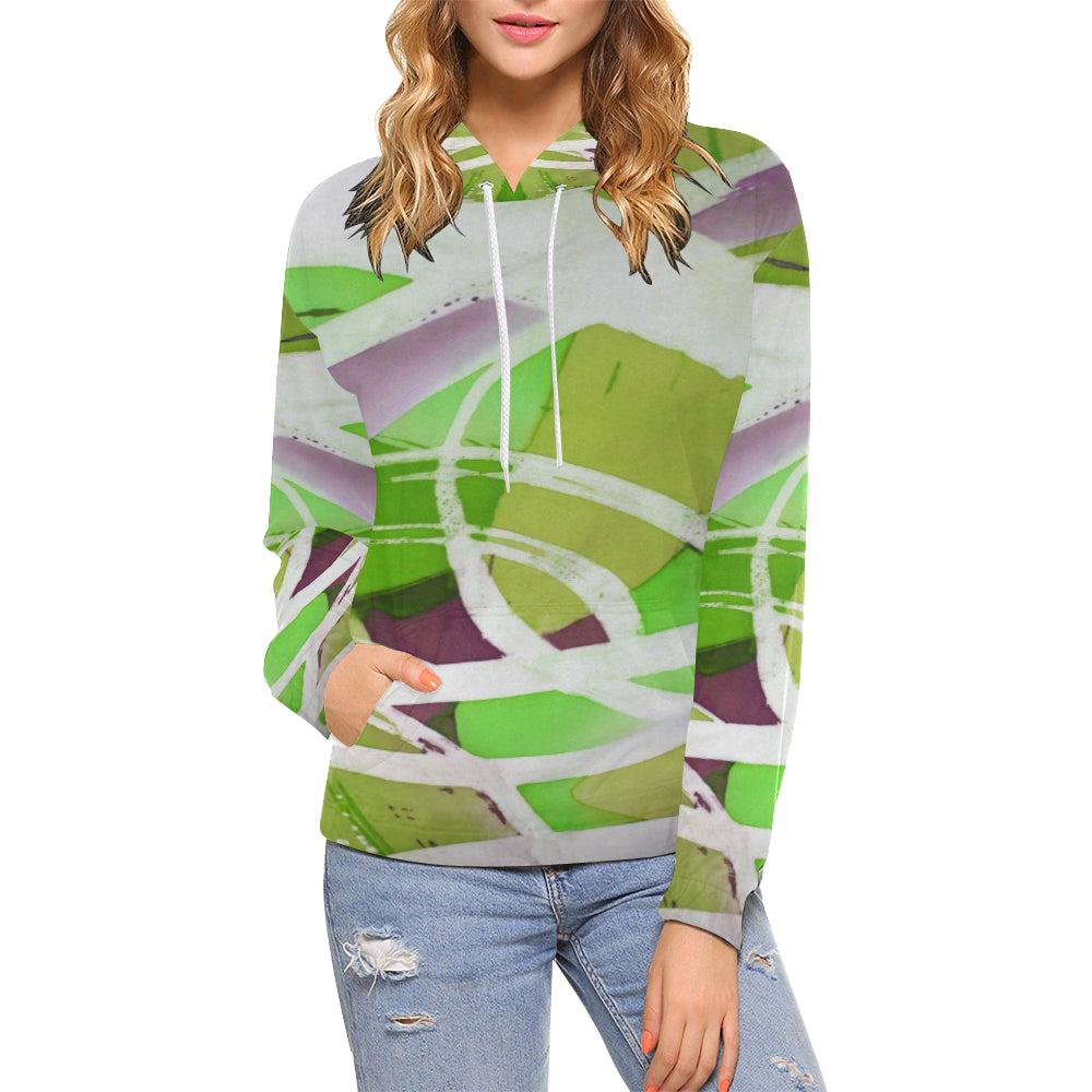 Abstract Circles Green All Over Print Hoodie for Women (USA Size) (Model H13)