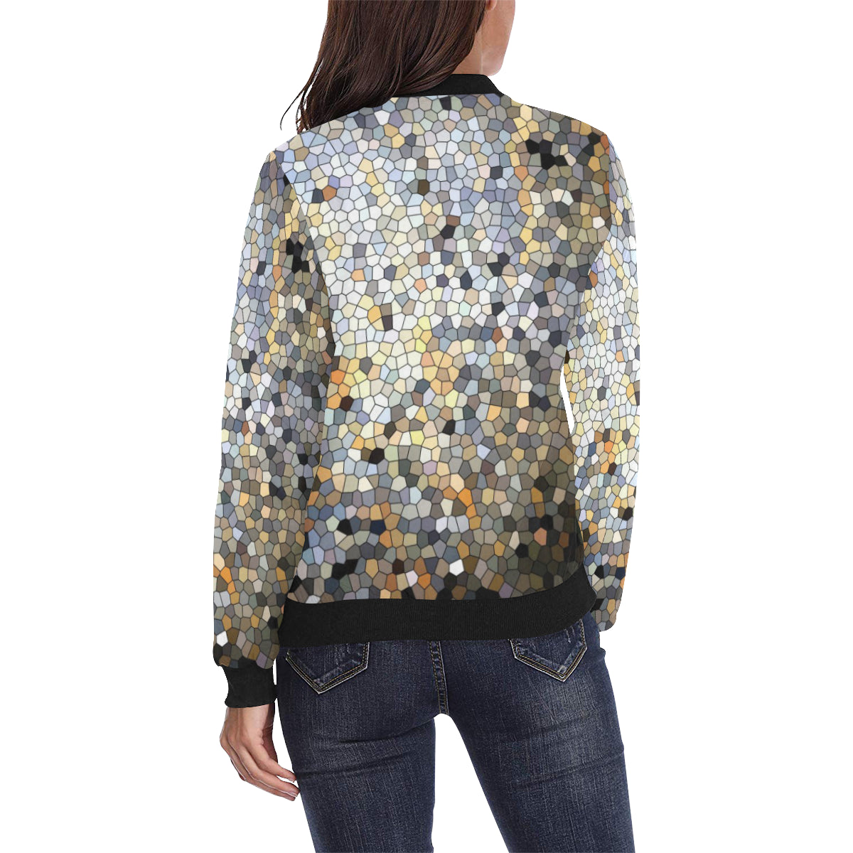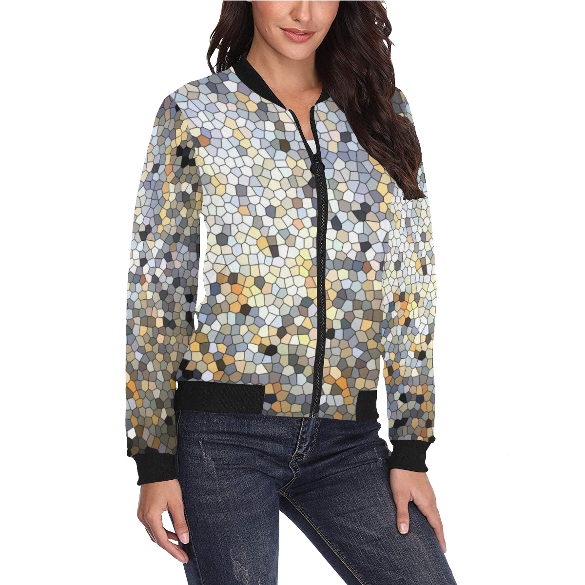 Marbled Abstract Mosaic All Over Print Bomber Jacket for Women (Model H36)