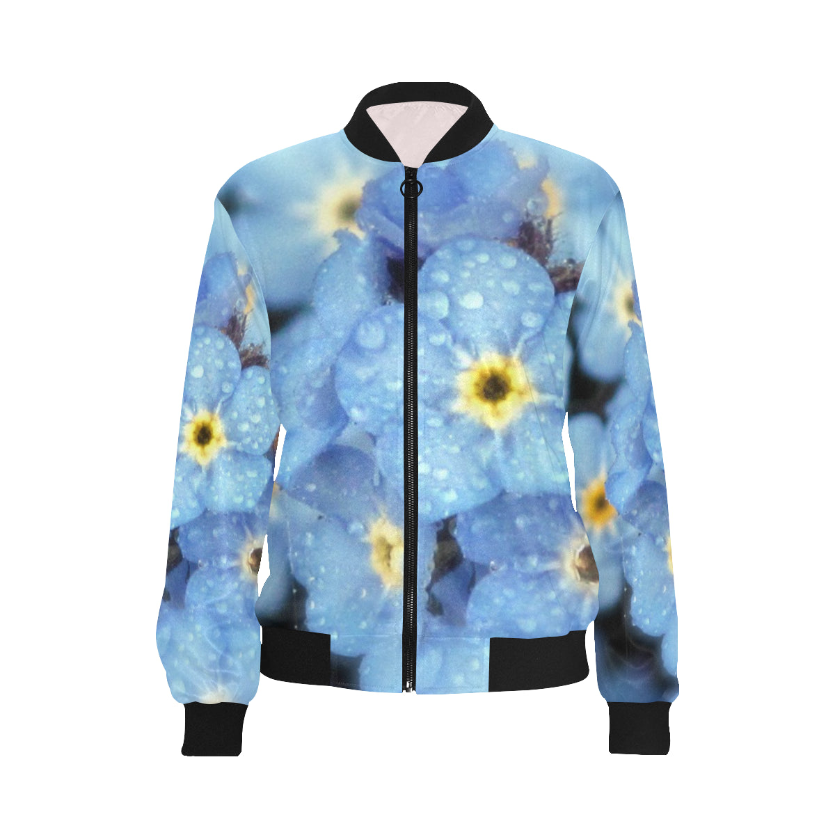 Forget Me Not Flower All Over Print Bomber Jacket for Women (Model H36)