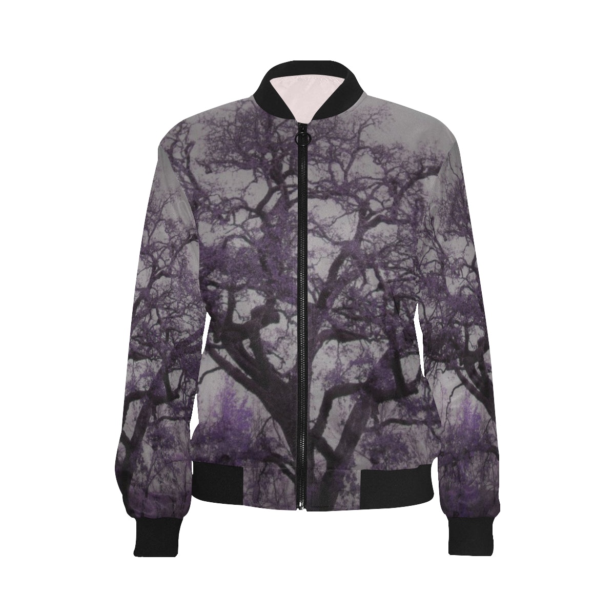 Spooky Tree Purple All Over Print Bomber Jacket for Women (Model H36)