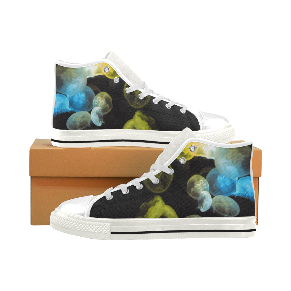 Jellyfish Yellow and Blue Men’s Classic High Top Canvas Shoes (Model 017)