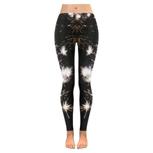 Fireworks Flowers White Low Rise Leggings (Invisible Stitch) (Model L05)