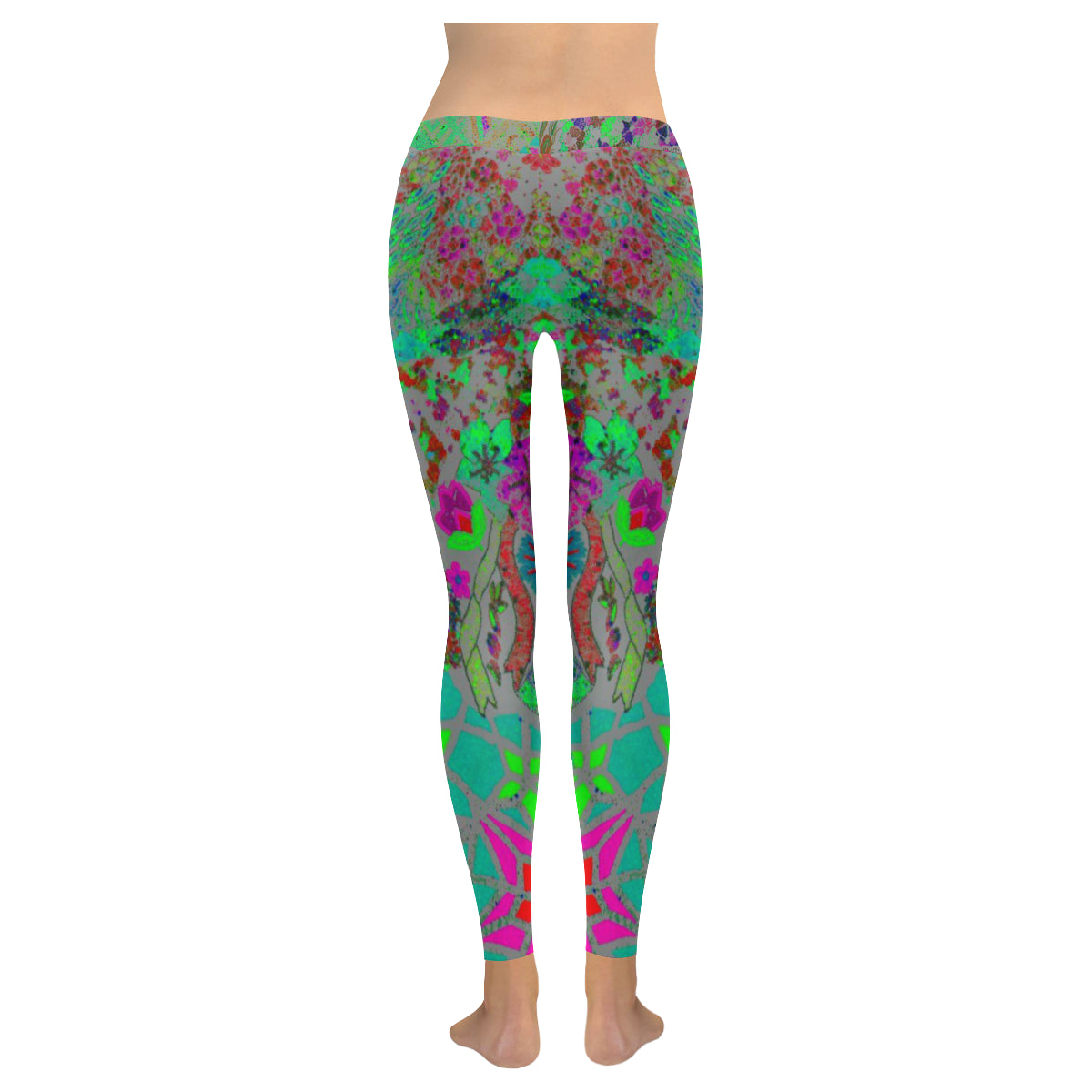 Holiday Paisley Aqua Low Rise Leggings (Invisible Stitch) (Model L05)