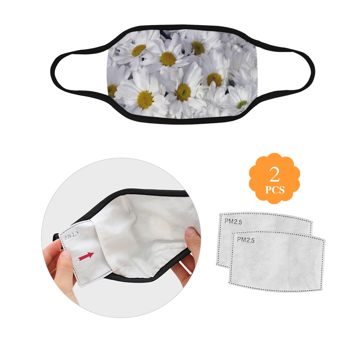 Daisies Flower Mouth Mask (2 Filters Included)
