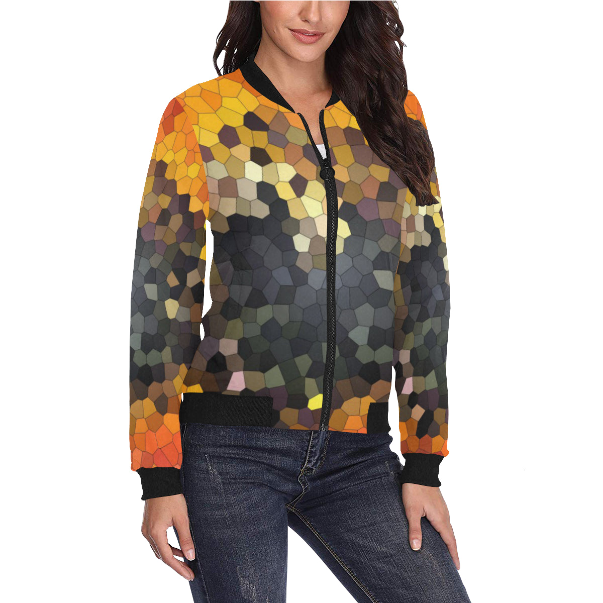 Busy Bee Sunflower Mosaic All Over Print Bomber Jacket for Women (Model H36)