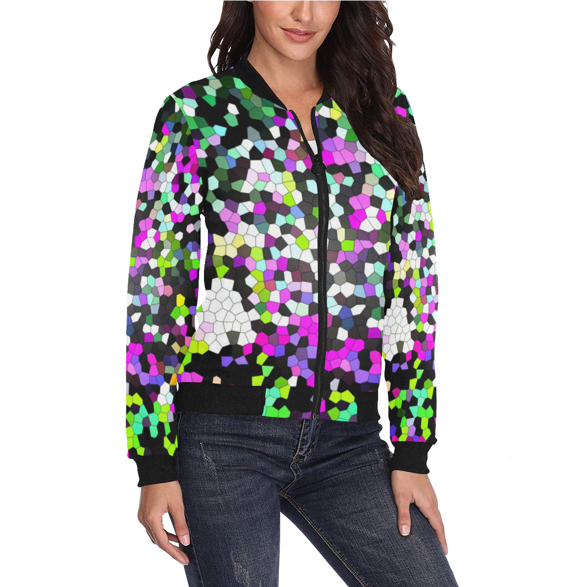 Holiday Paisley Purple Mosaic All Over Print Bomber Jacket for Women (Model H36)