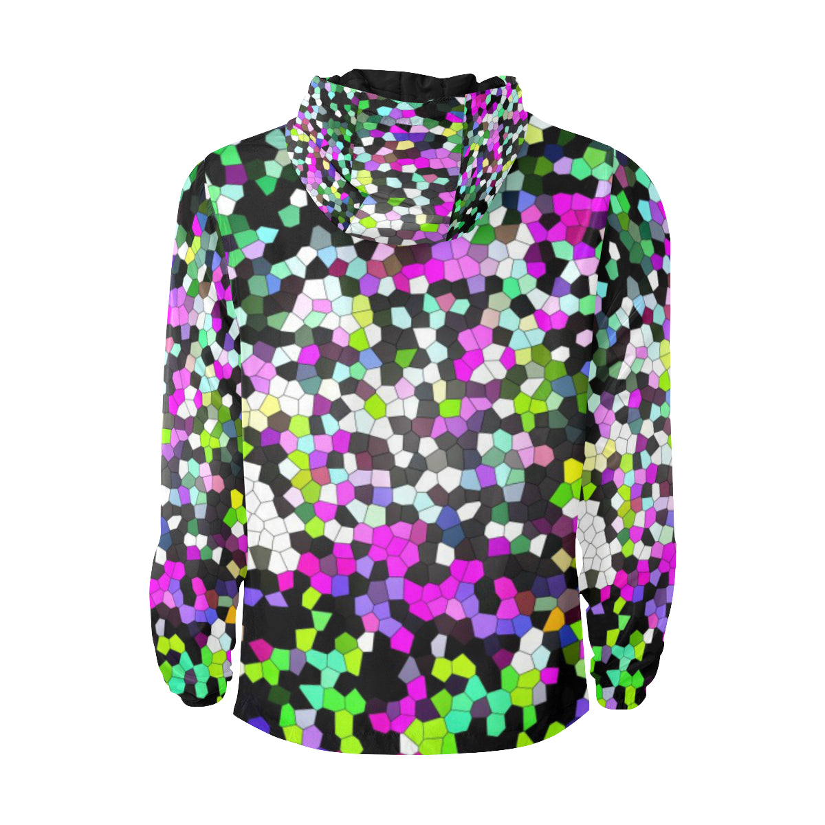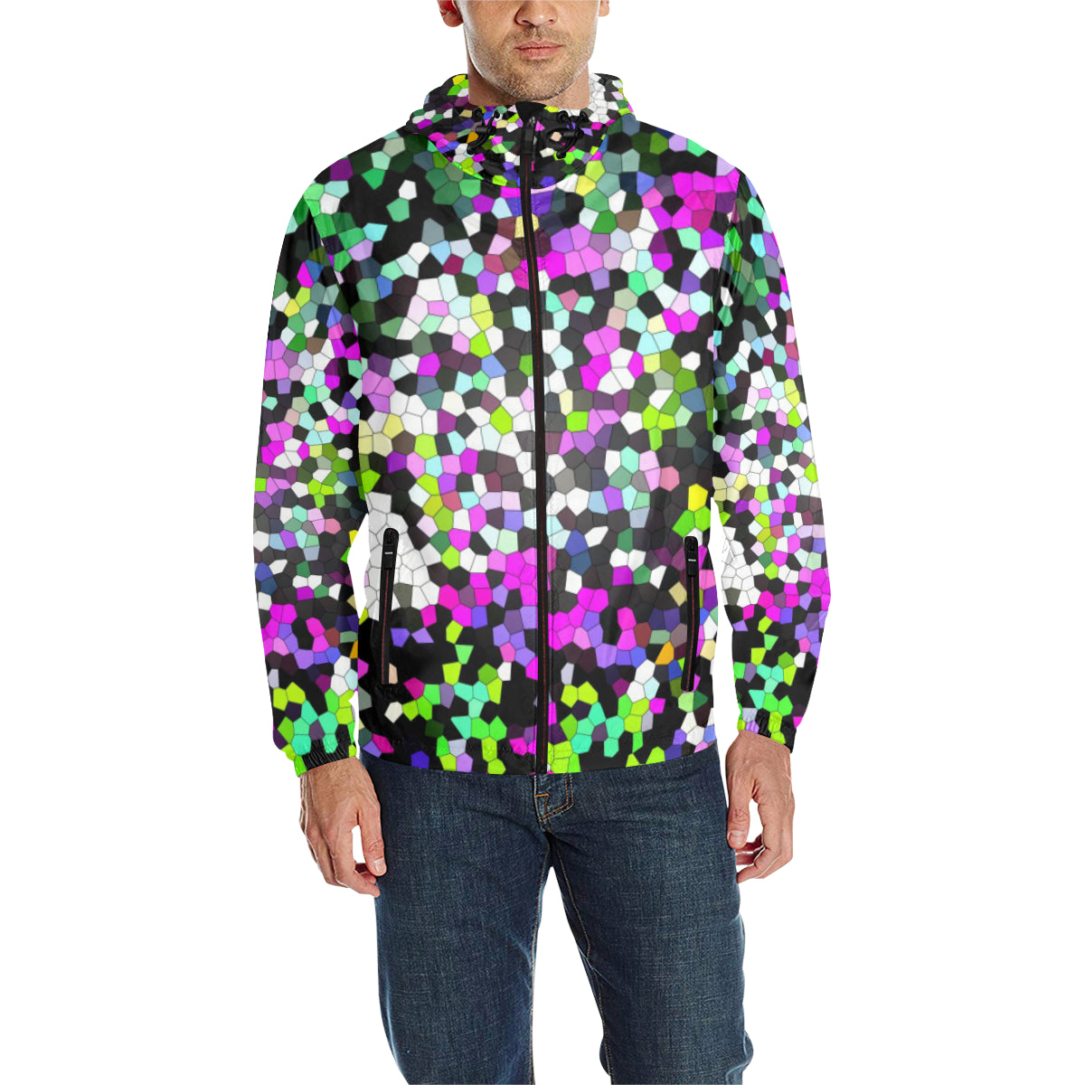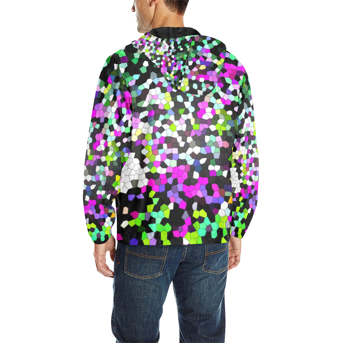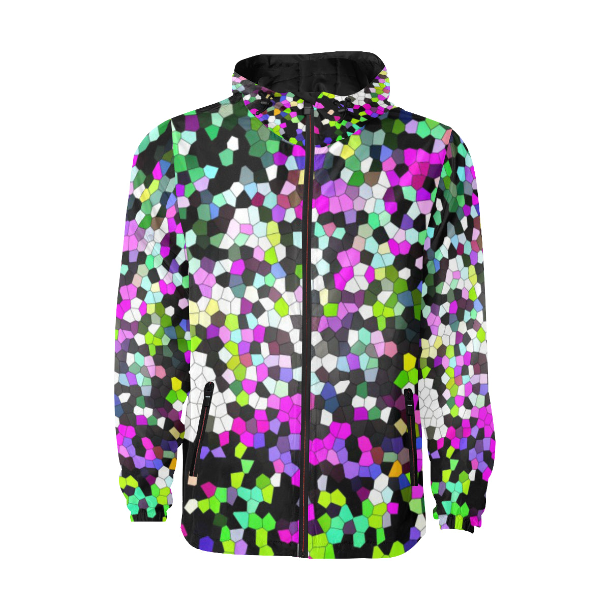 This all over print windbreaker with drawstring hood, elastic cuffs and bottom hem is